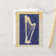 En harp sillhouette i blått på en subtil bakgrund av guld och grått, som textureras i ett stenliknande struktur. Enkelt men vackert och klassiskt. . . Ett underbart vykort för varje harp älskare.
