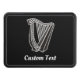 Svart och vit harpsikon med keltisk knapp dekoration. Anpassningsbarnas bakgrund färg. Anpassningsbar Text.