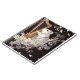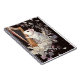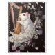 Clean, elegant notebook cover featuring a white rat with a golden harp surrounded by petals and abstract geometric fragments. Aesthetic stationery for creative minds.