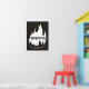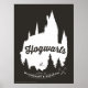 Kolla in denna silhuett av Hogwarts slott, med namnet "Hogwarts" i kursiv stil. Orden "Skola för magi och trolldom" är skrivna nedanför med ett par korsade trollstavar.
