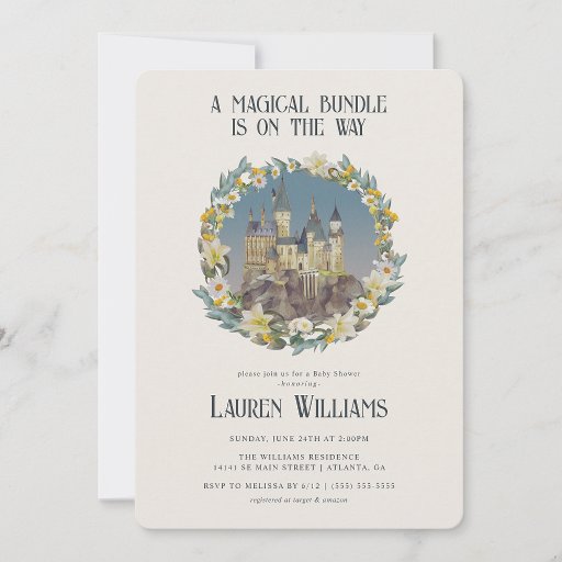 Gratulerar till upphetsningen av baby gender med den här spännande Harry Potter-temed-inbjudan med den ikoniska Hogwarts-slottet. Perfekten för fläkt i Wizarding World, denna viskartade utformning är ett steg mot ett magiskt och oförglömligt firande.