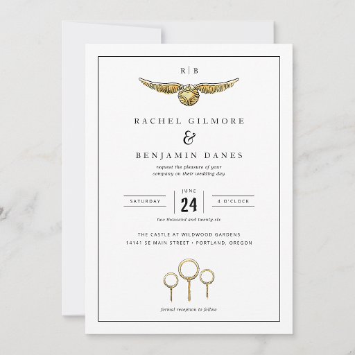 Hämta din speciella dag med den här Harry Potter Magic Watercolor Wedding-inbjudan. Den här inbjudan har vismisk vattenfärgsdesign som inspirerats av Wizarding World (Wizarding World) och anger perfektens ton för ett magiskt bröllop firande. Eleganten, från det stavande typsnitt till de subtila noderna till den ikoniska Harry Potter-bilderna, skapar en fängslande blandning av romantik och fantasi. Med den här inbjudan kan du, helt anpassade, anpassa alla detaljer och skapar den helt och hållet till din bröllopsdag full av magi och .