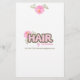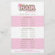 Cute HAIR-logotyp med anpassningsbar färg HAIR, text och rand, med rosa peony-blomma, personlig med ditt namn på den här stilistemallen med tre kategorier och tolv enskilda linjer för specifika tjänster, tillsammans med din kontaktinformation på baksidan.