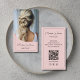 Visa din salongs personlighet med detta moderna rosa visitkort för frisörer. Designat med en mjuk rosa ton och minimalistisk layout, har det plats för ditt foto, logotyp och en skannbar QR-kod för att koppla klienter direkt. Ersättningsbara sociala medier-ikoner låter dig visa din närvaro online med stil. Perfekt för frisörer, färgare och skönhetsproffs som vill sticka ut med en elegant, modern look.