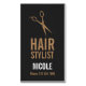 Hår Stylist Card Magnet Guld med svart bakgrund. Anpassa med din personliga information och färg.