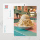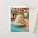 Detta unika vykort är ett sött sätt att säga hej och hålla kontakten med vänner och familj som har en hyperrealistisk, glassliknande vaniljsundae övertäckt med en genomskinlig, blank glasyr och perfekt släta bananasnittar. Mot en drömlik retro pastellfärgad bageribakgrund fångar denna design den tillfredsställande, ASMR-inspirerade estetiken av polerad hartz och kristallina gods.