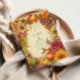 Gratulera till din stora dag med denna varma och festliga skördedesign. Med vattenfärgade äpplen, vindruvor, dahlias och falllöv fångas säsongens rikedom i den här layouten - perfekt för en rustisk höst bröllop. All text är helt anpassade.