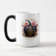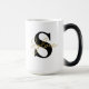 Den här anpassningsbarna med monogrammet mugg har en svartvit och guld färgad-pumpa med blommigt-accenter över en dubbla med guld-färgad hexagon ram. Monogrammet på den andra sidan kan anpassas med vilken brev eller namn som helst. Även teckensnittet och färgen kan anpassas, och bilder kan justeras för storleka tecken eller placering.