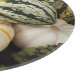 Köp och späd maten på den här runda stil, dekorativa, glasskärskivor som har en livsfarlig bild av färgstarka, skördade pumpor och skräp som omges av färglöst löv. Perfekt för höstsäsongsdecor, fall eller när som helst på året och gör en underbar köksvisning.
