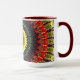 En livfull solros ljuger i mitten av denna mugg med ljusa färgader.