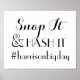 Ett bröllop-tecken med svart och vitt skript med social-mediahash-märkre för dina gäster som tar bröllop snaps till , till visning på bröllopsmottagningen. Du kan fritt anpassa ord på utskriften till valfri kostnad utan extra. Fäst den och hash den....... ett enkelt tecken som kan ramas in i finare eller ram till kostym i er bröllop-décor.