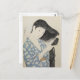 Hashiguchi Goyo - kvinna i blått som kammar henne Vykort