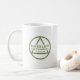 11 oz vit mugg med Hassler Instruments logotyp på båda sidor i grönt