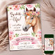 Häst 5:e födelsedagen Rosa ros Blommor Saddle up Inbjudningar