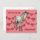 Detta söta Valentine-vykort kommer att glädja unga och gamla lika med den söta hästen som ber om att bli din Valentine. Speciell till hästälskare, djur älskare och alla som kärlek ett sött kort. Valentindagen kan vara besvärlig för vissa, särskilt om du vill skicka ut kort till klassrummets vänner och grannvänner. Ta bort kant från ge och låt en som har tur nog att få det här kortet le.