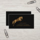 Affärskort idealiskt för hästvård, hästutbildning, veterinärtjänster. Den här eleganten visar en gyllene häst med cirklar på framsidan, med ditt namn och din kontaktinformation.