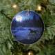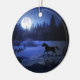 Söt häst som prydnadsföremål med en trottohäst i snö i ljuset av fullt måne.