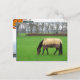 Häst i vykort. Ett stillastående landskap på landsbygden med en häst i ett nederländskt polderskugga omgivet av Träd och hedmatande/betande gräs på en Nicevinterdag i Nederländerna/Nederländerna. Helt Anpassade! Anpassa och lägg till mer text och Bilder om du vill!