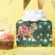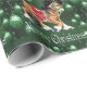Häst med den röda och gröna halsen som omges av gröntprydnadar och grön bakgrund. Textnågot att sägagod jul. Det finns en annan version av denna designen den något att sägasäsong hälsningar.