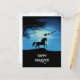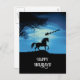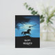 Glad helg julvykort med häst och tomtensilhuett i ett vackert blå himmel på natten. Ett roligt sätt att skicka hälsning till alla på helgdag jul!