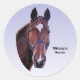 Här finns en vacker kastanjhäst med vit stjärna på det vackra klistermärket.