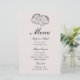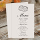 Denna meny för bröllop visar en vacker illustrerad häst i rustik stil, vilket gör den idealisk för landsbygds- och gårdsbröllop. Designad i mjuka elfenbensfärgade nyanser med elegant svart skrivstil, ger den en touch av förfining till lada, rid- och utomhusbröllop. Lämplig för höst-, vår- eller sommarfirande, ger denna meny en romantisk och hjärtlig stämning till din mottagning. Hästmotivet ger en tidlös karaktär, perfekt för par som uppskattar lantlig skönhet och naturliga detaljer. Den samordnas vackert med din kompletta brölloppssvit.