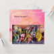 Elegant, fantasifull blomsterdesign med en magisk fjärilsväxt, blomsterväv, älvor, hästar, musikalisk nattkonsert i livfulla blågröna, röda, gula, vita färger. Akrylmålning på duk, blandteknik med guld- och silverfolie. Denna konstnärliga, coola design är lätt att anpassa med din text och initialer som bröllopsceremoni, bröllopsannons, konsert, årsdag, program, platskort, tack, söta 16-års födelsedagsfester, romantiska förlovningsfiranden, högtider, kontor, familjeåterträffar, nyårsaftonsfirande, årsdagar, sammankomster, konsert eller nästan vilken händelse som helst!