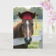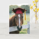 Häst som bär en röd examensmössa kort
