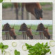 Häst som färdas för en morot. kökshandduk