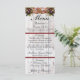 Med en barwood-bakgrund med rött band, snöre, kryddade hästskogar och buketter på framsidan med ett monogram på baksidan. Dessa menyer är underbara för land eller utanför bröllop. Om du ändrar typsnitt kan du skapa mer elegant eller rostfritt program. Designad för samordning med "Gettin' Hitched - Horseshoes, Ribbon & Snöre"-samlingen. Om du vill ändra information klickar du på "Anpassa". Om du vill flytta texten eller ändra texten storlekt, teckensnitt eller färg klickar du på "Klicka för att anpassa ytterligare"
