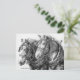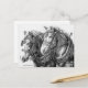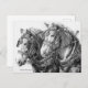 Denna teckning hyllar de historiska ikoner som kallas "tunga hästar". En gång en integrerad del av nästan alla aspekter av vårt jordbrukshistoria, uppfödras och njuts numera draghästar (eller "arbetshästar") för sin fantastiska storlek, styrka, grace och mildhet i temperamentet. Teckningen är utförd med penna och bläck för att noggrant fånga djurens skönhet, deras tålamodiga stadighet och den invecklade sele som möjliggör kontroll över dessa "stora milda jättar". Detta vykort skulle vara perfekt för draghästentusiasten på din julklappslista!