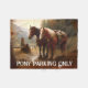 Denna originalgrafik har ponnyer med westerna sadeler som är bundna till en räl med ord "endast ponyparkering".
