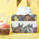 Tre härliga hästar som står i ett betasmink detta älskvärt, fotograferar design. På varje avsluta en brun häst med vitteckning och i centrera en grå färghäst med vitteckning. Detta bedöva djura foto gör den perfekta designen för djur- och hästälskare.