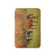 Denna djura badmatta presenterar konstfotografi av en älskvärd lantlig höst landskap med hästar som betar det gröna gräset. En backe hägrar bak dem i härliga nedgånglövverkfärger av rött, orange, guld-, gulnar, bryner och görar grön.