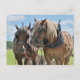 Ett foto av två draghästar, ett segment och en kastanj, som tar en rast vid en svängtävling.