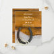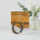 Ställ in en avslappnad ännu i klass-ton för dina kommande djur med det charmerande Horseshoe och Pearls Land Westerna Bröllop spara datum-tillkännagivandet. Denna rustiska chic eller behålla på gården giftermål innehåller ett fyrfärgat foto av en rostande häst med ett vitt pärlhalsband och möhippa med en brunt lingerbakgrund.