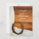Ställ in en avslappnad ännu i klass för dina kommande nuptialer med den charmerande Horseshoe och White Satin Land Westerna Bröllop spara datum. Den här rustiska chicen eller behållan giftermål på gården har ett digitalt färgat fotografi av ett rostfritt hässkon med vit silke och bruna lingor.