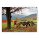 Hästarna stötte på bergsöversta med berg i bakgrunden på hösten.