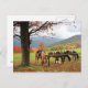 Hästarna hissade på bergstoppen med berg och faller i bakgrunden.