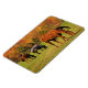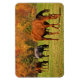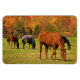 Denna flexibla magnet har en bra konstfotografi av ett vackert landskap på landsbygden där hästar betar grönt gräs. Ett backe ligger bakom dem i gloriöst fall, blad färg av rött, orange, guld, gult, brun och grönt.
