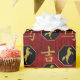 Den ursprungliga digitala målningen av Leslie Sigal Javorek på denna glanskövertäckta figursättning firar "The Horse w/ upprepade guldhästar on gilt-edged black hexagons alternating w/ golden Chinese Characters for the ord ’Horse’+"Lycka till" on a rik red bakgrund. Underbar för skapar bokskydd också!