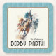 Elegant derby party turquise gräns Square papper underlägg har hästhästar och jockeys på vägen till den avslutat linjen. MATCHING-objekt i vår samling.