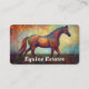 En vacker oljemålning av en häst-galoping. Detta är ett affärskort som kan användas av häst-/hästindustrin. Den kan användas av tränare, veterinärer, stallar, jordbrukare, mata och förråd, terapi osv. Kortet kan enkelt ändras (ange namn i ditt företag, namn, rubrik, adress, mobilt nummer och e-post adress). Du kan också enkelt lägga till eller ta bort text. Du kan t.ex. lägga till en URL till en webbplats. Anpassa detta för att göra det till din egen. Hästhästar från häst och veterinär utbildar tränare som kör på stabila stables farrier farers horseshoe shoe matar leveranser