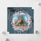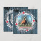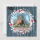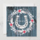 Personlig julkort med ditt hästfoto i sliten blå träram, silverelement, julkrans och en silversköld på baksidan.