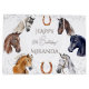 Hästmatta gåvor av födelsedagsfest till hästar från häst från elegant födelsedagsfest, vackra vattenfärgade handmålade hästar porträtt för låt oss häst runt hästtemat party