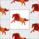 Hästar Anpassningsbar Ivory Linen (54 tum bred) Fabric Beval horse silhouette i orange och röd. Anpassa bakgrunden till färg.