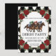 Fira din Kentucky Derby-fest med denna eleganta inbjudan till hästkapplöpning med galopperande hästar och röda rosor blommiga ramar. Perfekt för Derby-dagens fester, hästkapplöpningsevenemang och vintage-inspirerade sammankomster. Idealiskt för vårfester, utskrivbara inbjudningar och klassisk Derby-festdekor.