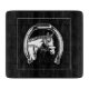En bild av ett svart och vitt skäggigt skal som illustrerar en Thoroughavlad häst som bär en bridle med en skugga inuti ett hässkon. Denna teckning har etsats in i india bläck på kartongen.
