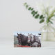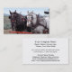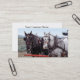 En visitkort med ett foto av två formulerar den oavkortade selet för hästar, en svart, och en grått hitched till en vagn för en vagn utbildar reenactment i Oregon. Företagsnamn och avbildar är på bekläda, med adressen, och annat specificerar på det omvänt. Fotoartighet av BLM/Oregon
