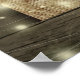 Paret Gammal Hästsko Hjärta med Repbåge Knut och Vit Spets, Solros, Strängljus och Jutekanvas på gammal lada Träbakgrund.